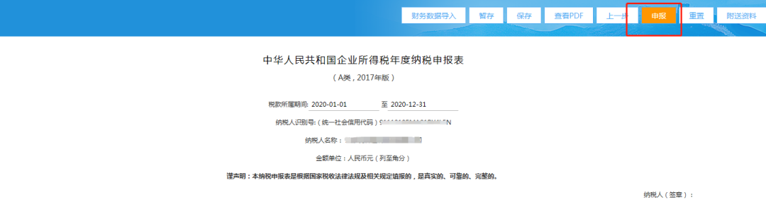 7.填写企业所得税(年报)申报表,完成后点击申报。
