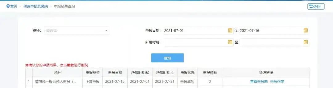 答:正常情况下,当综合服务平台获取到您当期已完成申报的结果时,会将自动跳转税款所属期到下期。