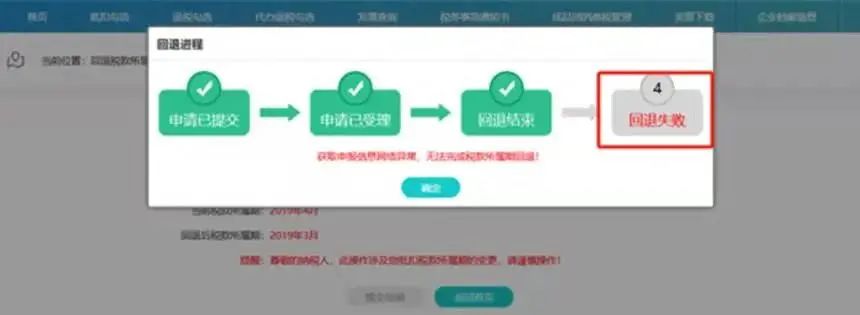 如果申请回退的企业不满足所有回退条件,系统显示回退失败,如下图: