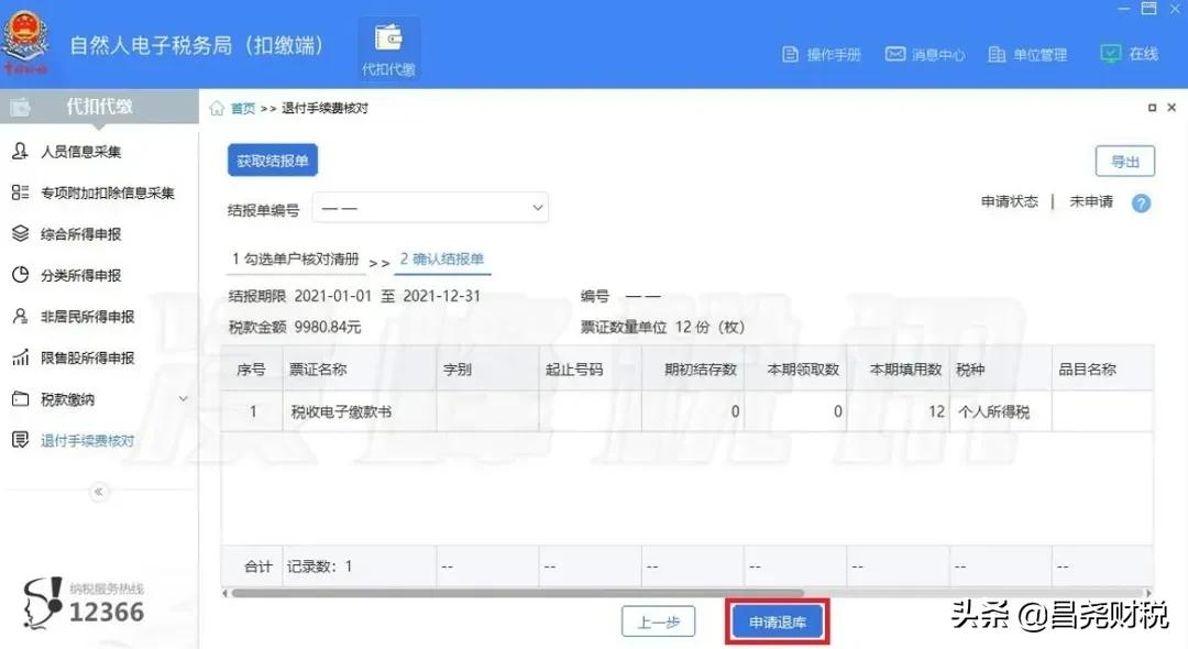 2.若发现扣缴客户端的结报单数据有误的,也可到税务大厅核对并确认结报单;在年度内扣缴义务终止的,应在终止后3个月内向税务机关提交手续费申请资料,由税务机关办理手续费清算。