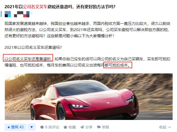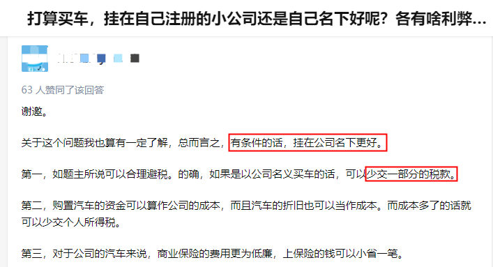 网上随便一搜,可以看到很多用公司名义买车的好处: