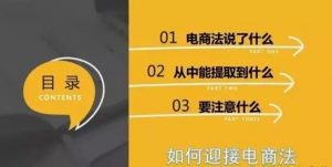 整个电商法大家应该都看了,内容没有太过复杂,基本上是一些常见的法律条文。整个电商法里很多内容是现成的,也就是其他法律条文里面都有的。比如你要办营业执照,中国本来就规定做商业就要做营业执照。